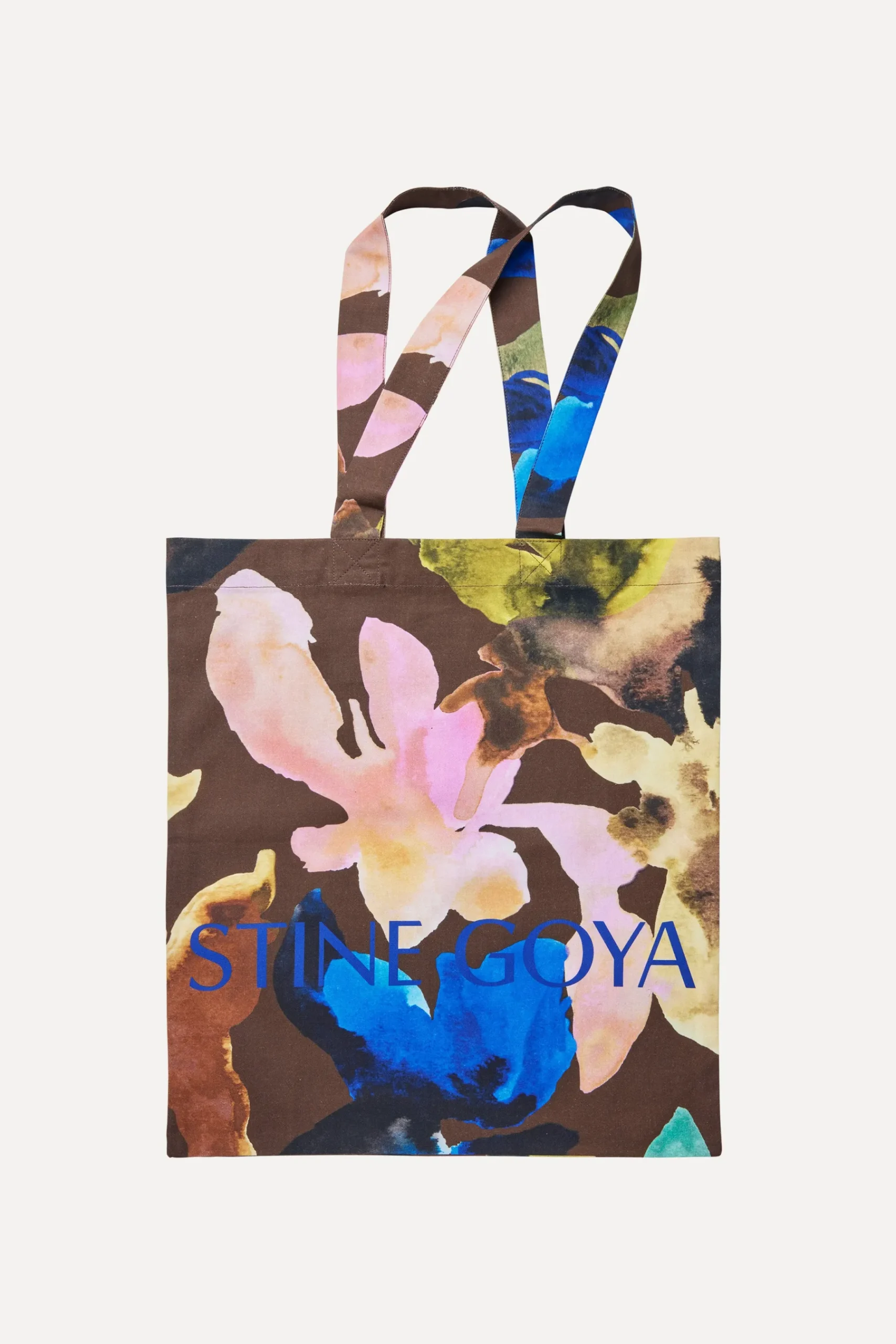 Klassisk mulepose, fremstillet af 100% Økologisk Bomuld, med et håndmalet blomsterprint og STINE GOYA logo.