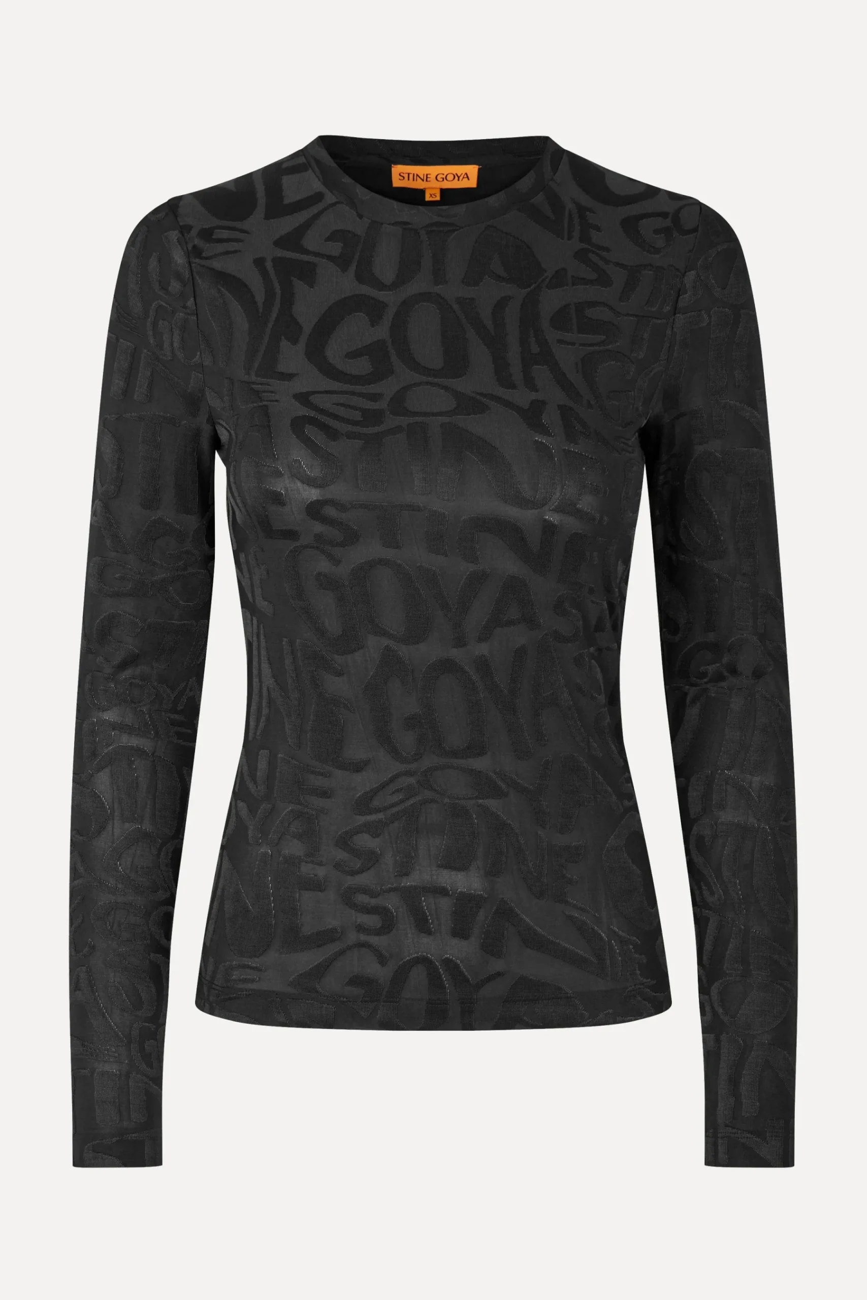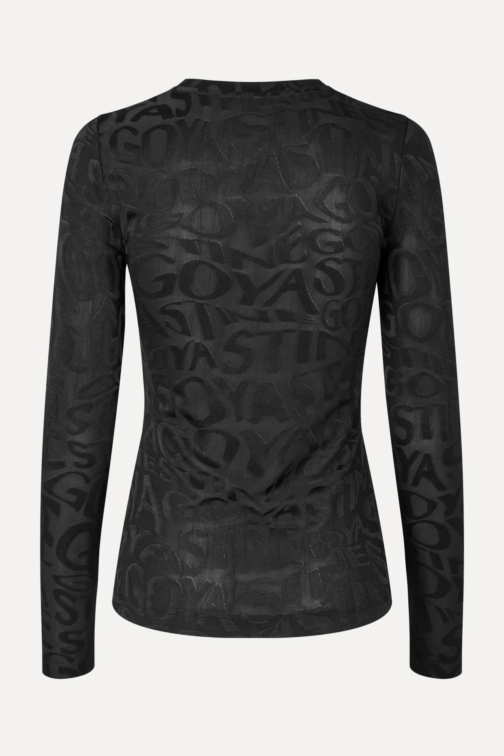 Langærmet bluse i sort med STINE GOYA logo-mønster. Blusen er designet med en rund halsudskæring og en tætsiddende pasform.