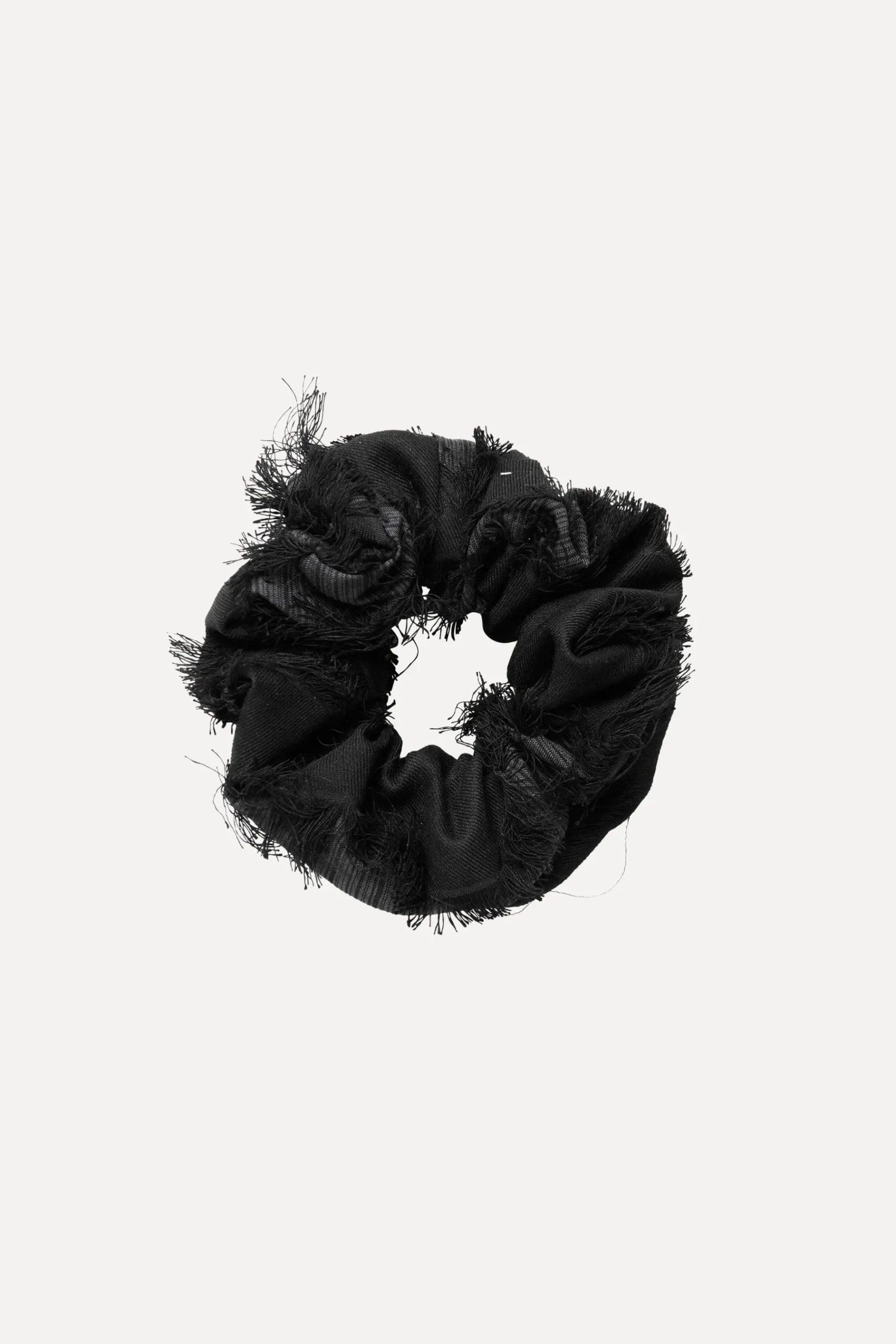 Sort voluminøs scrunchie, fremstillet af en delikat fil coupé kvalitet, med en diskret frynse effekt.