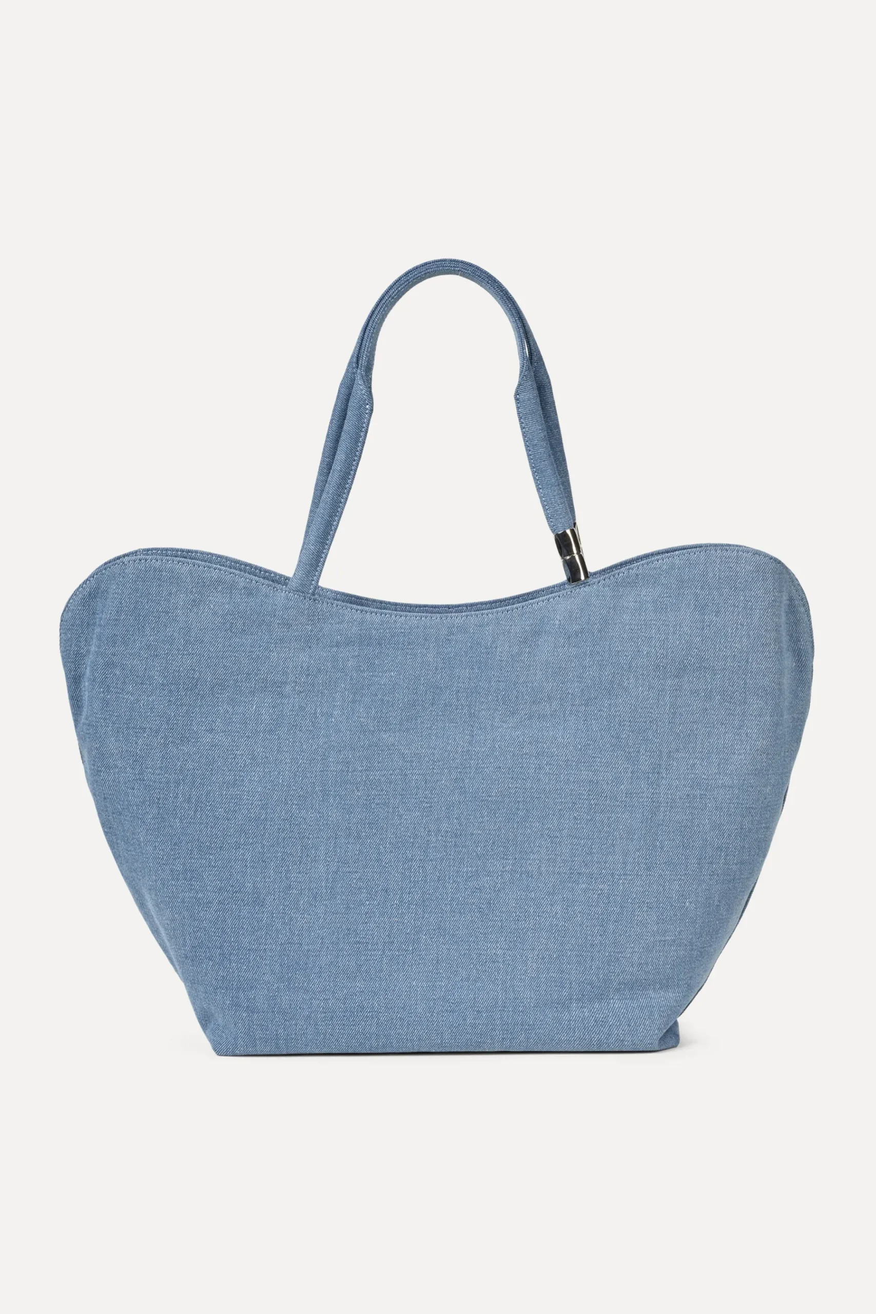Rummelig taske med 2 behagelige skulderremme, lynlåslukning på hovedlommen og blødt denim materiale.