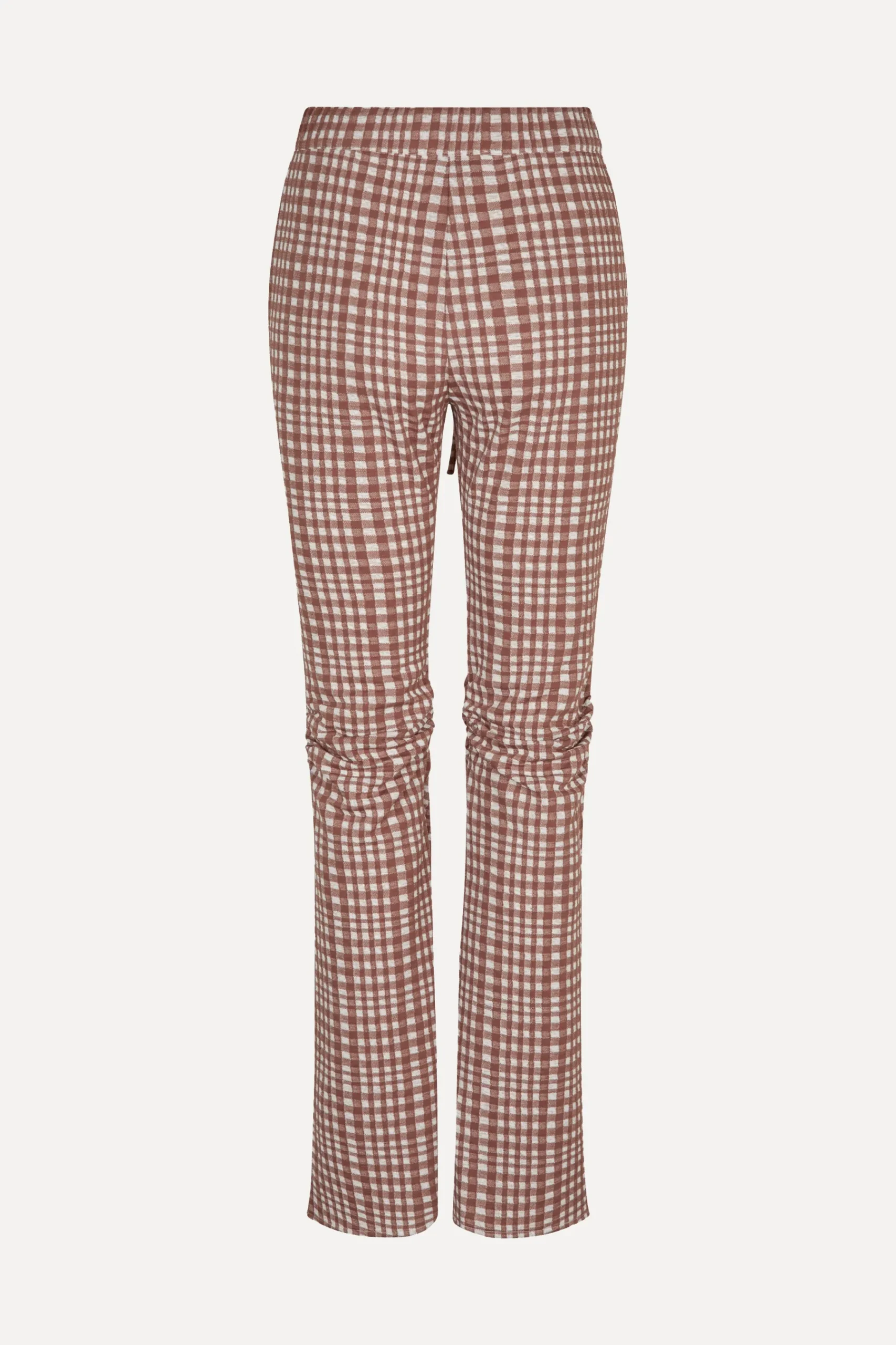 Ternede bukser med smalle ben med let vidde, og høj løbegang med snøre i taljen.