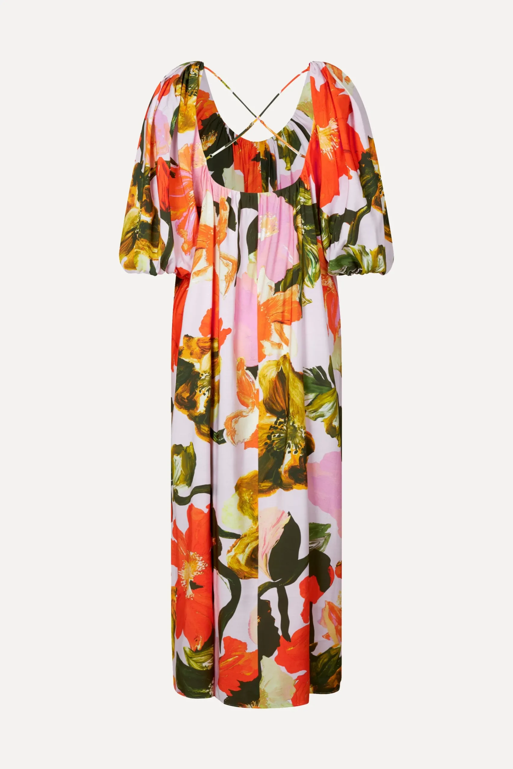 STINE GOYA Voluminous Gathered Midi Dress – Green impressionist hue Greenimpressionisthue New
