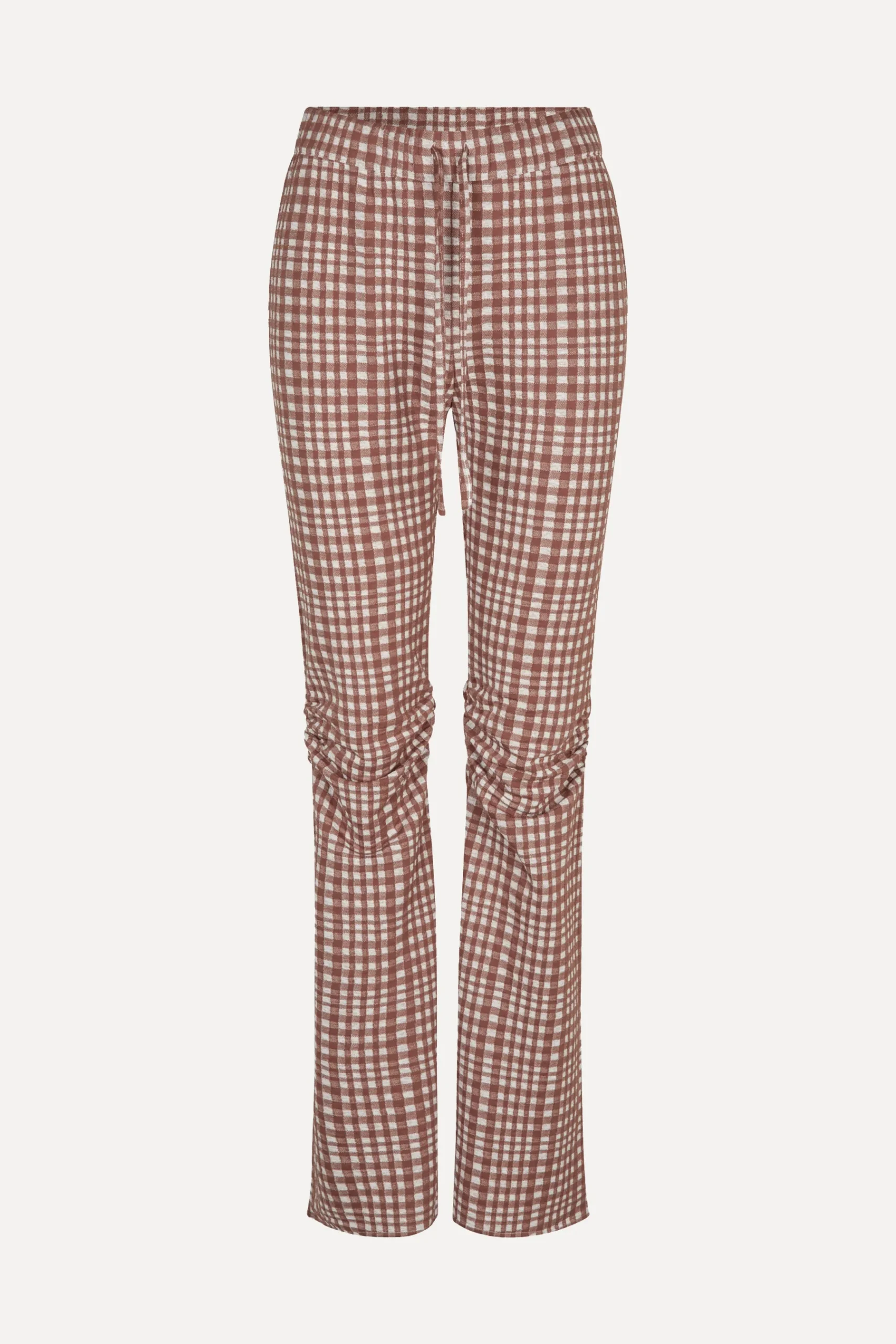 Ternede bukser med smalle ben med let vidde, og høj løbegang med snøre i taljen.