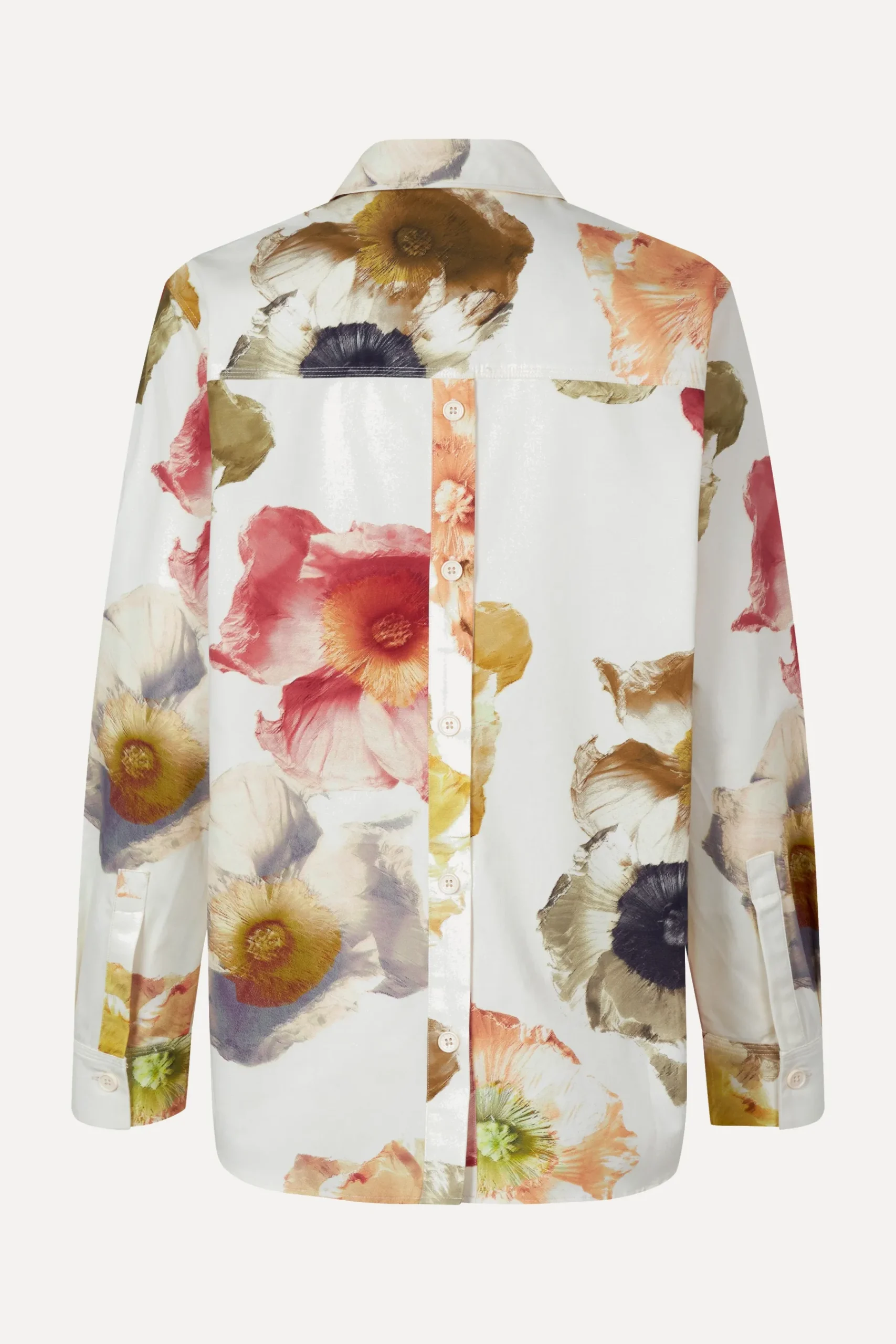Afslappet bomuldsskjorte, fremstillet af 100% Økologisk Bomuld, med blomsterprint, lange ærmer med manchetter og knaplukning foran. Detaljeret med slids bagpå med knap detalje