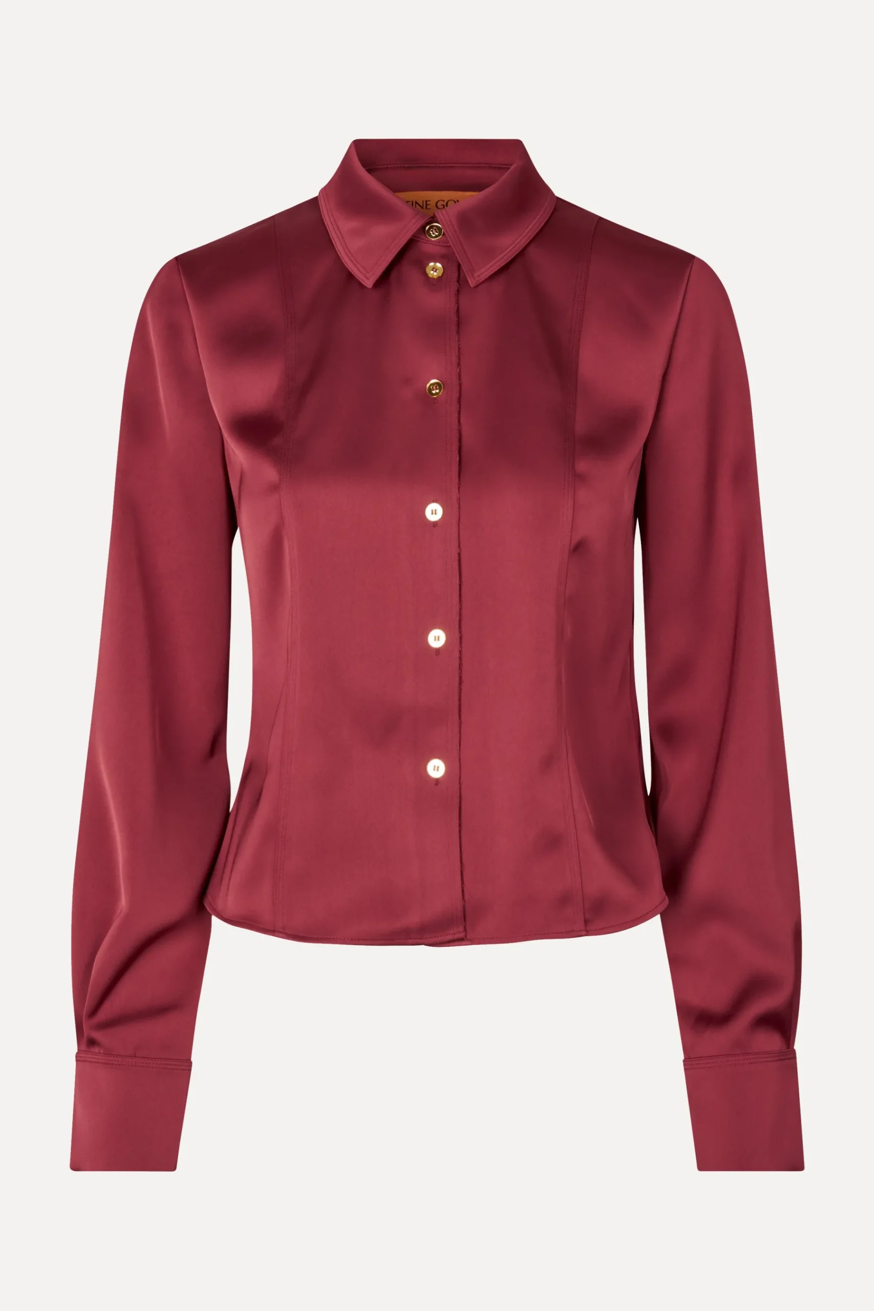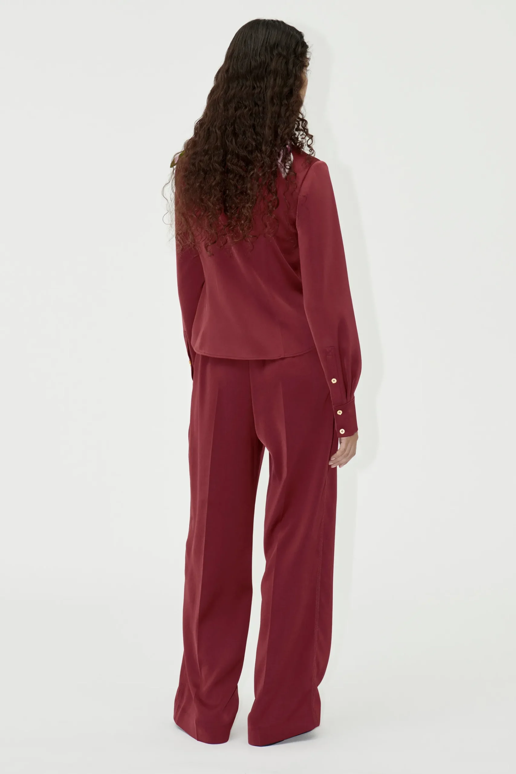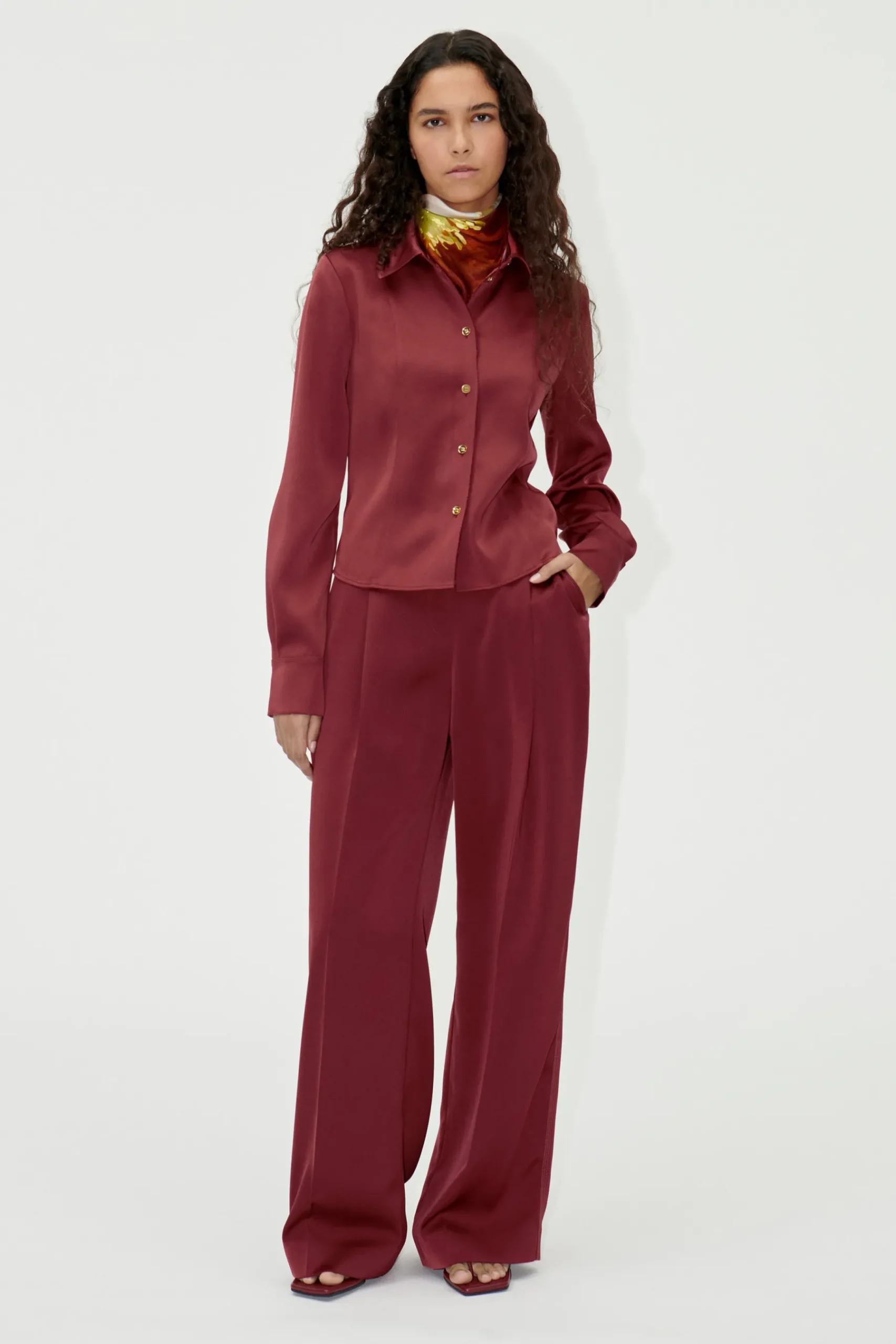 Elegant button up top with a slim slightly cropped fit, flattering seams and long slouched sleeves with cuffs. Pair with the SGCiara Pants in Raspberry.