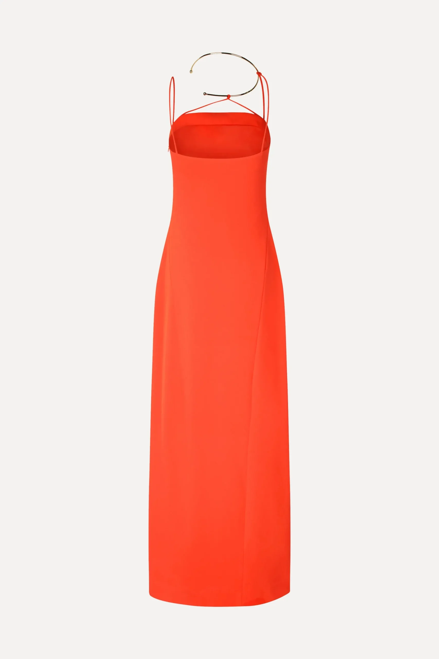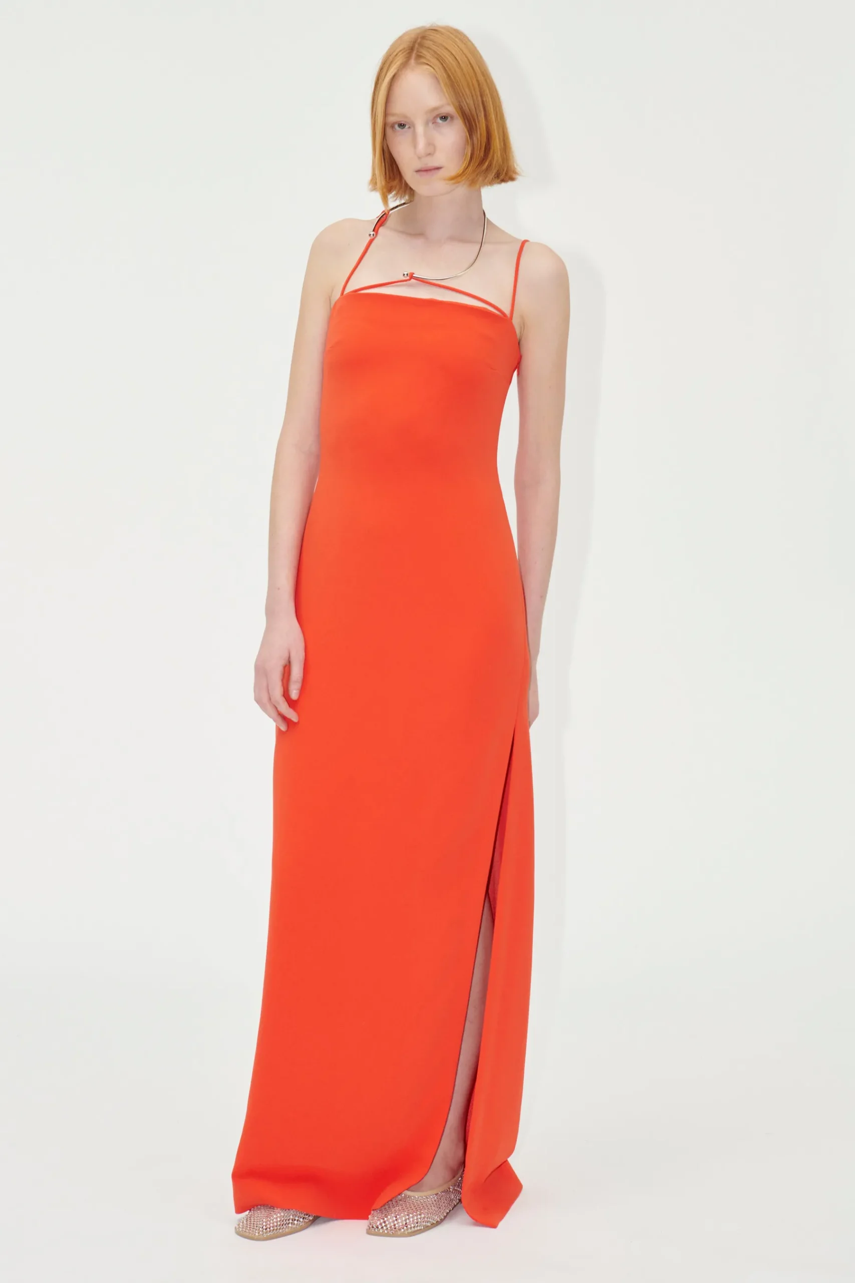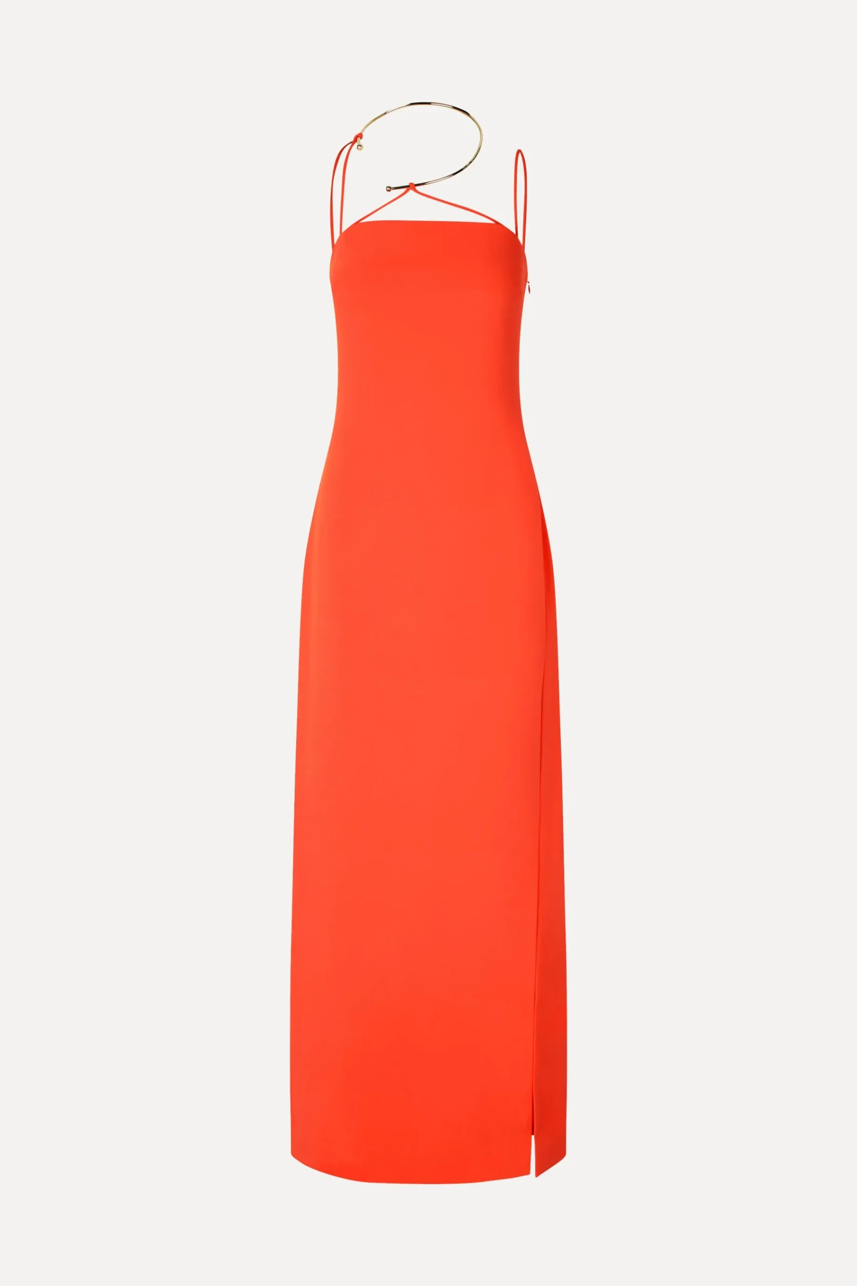 Chic kjole i fuld længde med høj slids på låret, ærmeløst snit med tynde stropper og guldhalskæde detalje.